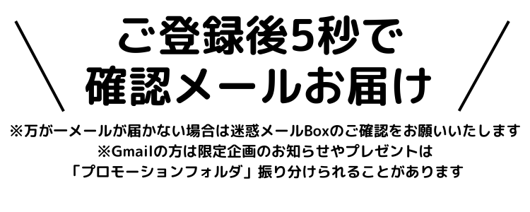 ※万が一メールが届かない場合は迷惑メールBoxのご確認をお願いいたします。